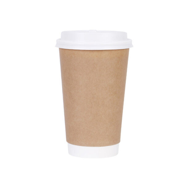 8oz Kraft Disposable Two Layer Double Wall Paper Cups with PP PS Cover Lids