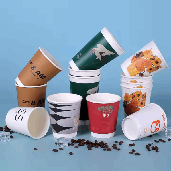 Big Volume Custom Logo Double Wall Paper Coffee Cups with Lids