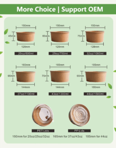 In conclusion, paper salad bowls have become an eco-friendly and cost-effective option for serving salads and other foods. Their design and features make them practical for use in various foodservice settings, while their environmental friendliness and compostability help to reduce waste and protect the planet. Paper salad bowls provide an economical, convenient, and sustainable alternative to plastic bowls, making them a smart choice for the future of foodservice.